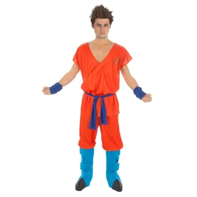 Seven piece set: you receive a top, trousers, belt, 2 armbands and 2 overshoes that faithfully reproduce the look of Son Goku Size S for men: the costume is comfortable and offers great freedom of movement, so you are ready for carnival, Halloween or comic con AUTHENTIC DESIGN: The orange top sports the rare Whis symbol that Goku only wore in the "Resurrection F" saga, making it unique Versatile: for carnival, Halloween or Comic Con, immerse yourself in the world of Dragon Ball and stand out from the crowd Lightweight material: made of polyester, this suit is comfortable to wear and durable, even after long hours of use, Manufacturer: Chaks