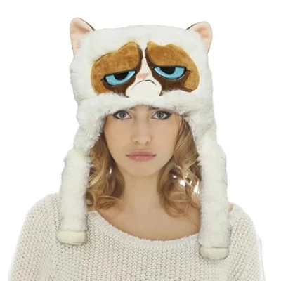 Iconic expression: the hat features the well-known Grumpy Cat face with its distinctively annoyed look, a real mood contrast for any party Eye-catching design: light brown accents on the ears and face stand out from the white plush and make the headwear particularly expressive Moving details: the soft bobble hanging on the side look like paws and swing humorously with every movement Unisex design: the plush hat is available in one size for adults and suitable for men and women alike Party highlight: whether theme party, carnival or street parade, this hat provides laughter and animal conversation piece, Manufacturer: CHAKS