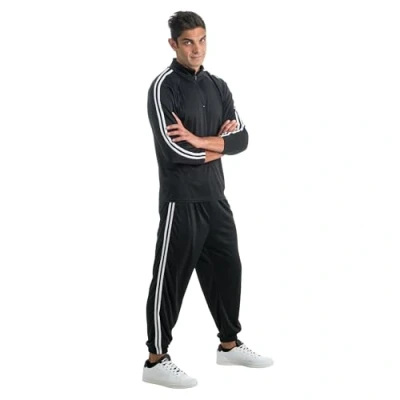 Two piece set size M: black top and pants for an authentic rapper look with strong streetstyle Design: the two distinctive white stripes recall a classic hip-hop look and give you a streetstyle flair Versatile: for carnival, festivals, theme parties or as a cool group costume Combination of styles: add a fisherman hat, sunglasses, belly bag or other accessories (not included) for a personalized style An eye-catcher at any party: with these seductive jogging bottoms you are a real eye-catcher for unforgettable performances, Manufacturer: Chaks