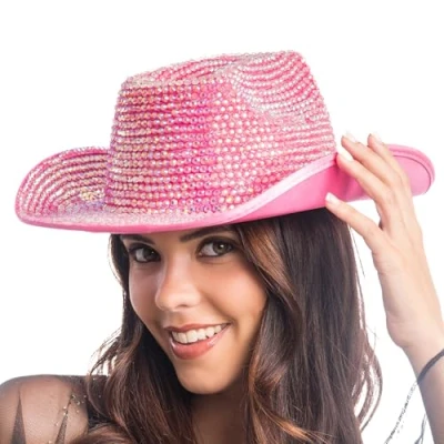 SHINE LIKE A WESTERN DIVA The cowboy hat is studded with sparkling rhinestones all around and attracts attention on any dance floor Colour: Pink: This hat gives your look an extra dose of glamour and brings the wild west in style to festivals, theme parties or the bachelor party A real highlight for your costume: whether cowgirl, country queen or wild party nights, the hat makes your outfit complete and unforgettable Wearing comfort: the hat sits comfortably on the head, even at long parties it remains comfortable to wear The extravagant western hat combines classic cowboy charm with sparkling glitter: for those who want to stand out and give their look a special touch, Manufacturer: CHAKS