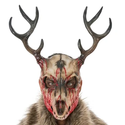 Distinctive horror design: this blood-smeared deer mask with indicated bullet hole, realistic antlers and creepy colorway creates a scary presence and attracts everyone's eyes - a real eye catching Soft foam for high wearing comfort: thanks to the flexible foam material, the mask sits comfortably on the face and can be worn comfortably for a long time Elastic band for a secure fit: the elastic band attached at the back ensures a secure hold, even when moving Large size with strong effect: with approx. 38 x 20 x 44 cm, the mask is strikingly sized - the distinctive shape and height of the antlers create an impressive silhouette Ready for many occasions: whether Halloween, carnival, theatre or horror themed party - the mask complements a wide range of fancy dress and creates a menacing mood that can be used in many ways, Manufacturer: CHAKS