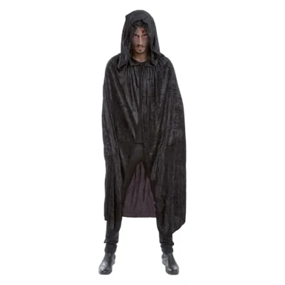 Versatile classic: the black velvet cape is a costume accessory for Halloween or carnival, suitable for vampire, wizard or witch Elegant velvet look: soft fabric provides an elegant look and comfortable to wear FOR MANY OCCASIONS Whether dramatic appearance or mystical look, this cape enhances the effect and makes for impressive performances Mysterious hood: with its hood, the cape offers additional scope for creative costume ideas UNISEX & LONG :At 72 inches in length, the black cape is suitable for both men and women, Manufacturer: CHAKS