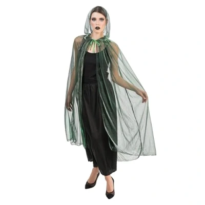 MYSTIC & Iridescent This green cape with semi sheer overlay adds mysterious depth to any costume Impressive presence: the generous length of 120 cm ensures a flowing movement and an expressive silhouette Versatile use: whether for theatre, role play or theme party, the design can be flexibly combined and reinterpreted Lightweight material for a comfortable wear: the cape sits gently on the shoulders and remains comfortable even during prolonged wear With hood for mysterious staging: the attached hood provides a mystical look and extra depth to the overall look, Manufacturer: CHAKS