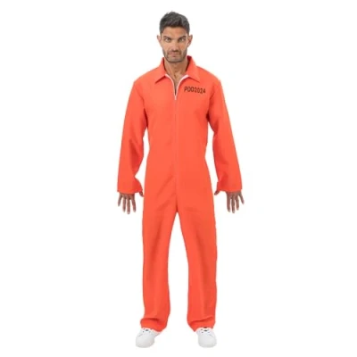 AUTHENTIC PRISON DESIGN Eye-catching orange jumpsuit in classic prisoner style for Halloween, carnival or themed parties 180 cm. Size: The costume is cut for a maximum height of 180 cm and sits loosely so freedom of movement is maintained Imprinted prisoner number: there is a firmly printed prisoner number on the chest giving the costume a realistic detail Back party gag: with the humorous lettering "Party's OVER" on the back, the jumpsuit is a real eye-catcher - this fun detail makes for laughter and clearly sets the costume apart from conventional models MULTI PURPOSE This orange jumpsuit is a universal costume that will be even more impressive with matching accessories such as handcuffs or masks (not included), Manufacturer: CHAKS