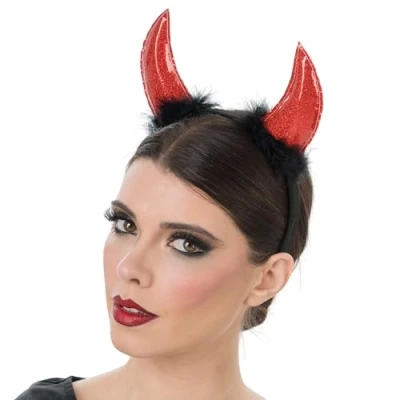 Devilish look for women: black headband with red glitter horns and black fleece provide an expressive look at Halloween, carnival or theme parties SPARKLING ACCENT WITH IMPACT The shiny surface of the horns reflects light and complements any costume with an eye-catching, wild detail Lightweight and comfortable to wear: the flexible headband sits comfortably on the head and is also suitable for longer events or busy evenings COMBINE WITH MANY COSTUME: whether witch, demon or devil, this accessory effortlessly complements different outfits and adds extra character For confident appearances: cheeky, playful and stylish - for those who like to present themselves creatively and expressively, Manufacturer: CHAKS