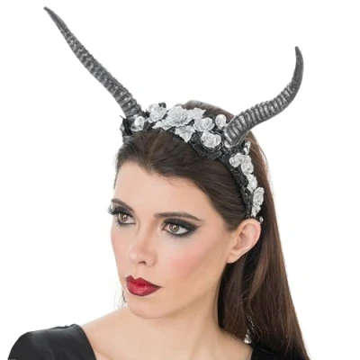 Contrast silver and black design: the combination of silver flowers and dark horns creates a strong visual impact and highlights gloomy or elegant disguises with clear presence Floral decoration with metallic shine: the silver roses set fine accents that look different depending on the exposure to light - a play between romance and strength Suitable for a variety of costume ideas: from gloomy figures to mystical roles, the headband can be flexibly integrated into different outfits Lightweight material with stable hold: due to the light weight and solid workmanship, the headband remains comfortable to wear even for a long time Compact solution with strong effect: even without elaborate styling, this accessory creates an expressive appearance, Manufacturer: CHAKS