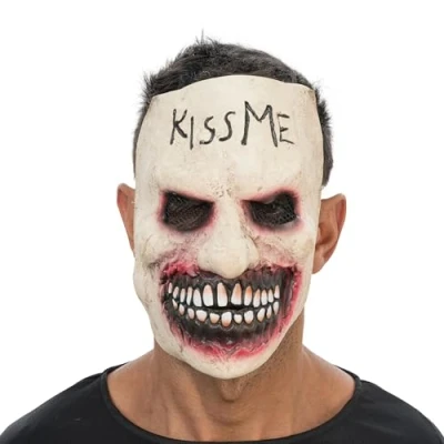 Distinctive horror style for events: the Kiss Me latex mask attracts attention with its macabre look at Halloween parties and carnival parades and provides a gloomy, eerie effect that stays in the memory Inscribed lettering with effect: the black "Kiss Me" lettering on the forehead provides a disturbing touch and gives the overall look an additional psychopatic depth, which significantly increases the scary factor Comfortable to wear thanks to an elastic band: the attachment is done via an elastic band that adapts to different head sizes, it keeps the mask securely in place without restricting the wearing comfort during prolonged use High-quality look thanks to latex structure: detailed facial features with accentuated teeth, dark eye sockets and blurred colour gradients ensure a realistic, eye-catching display Compact dimensions, great effect: the mask measures approx. 19 x 10 x 22 cm and can therefore be stored to save space, Manufacturer: CHAKS