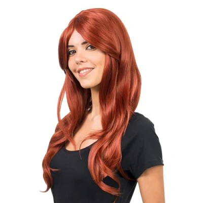 Immerse yourself in a new role: the 68 cm long, slightly wavy wig transforms you into a mysterious beauty or a radiant eye-catcher in seconds Sensual Red: The red wig provides a fiery, energetic look attracts everyone's attention The gently falling waves resonate with every movement and create a vibrant, almost magical effect: a must have for photos, stage performances or exuberant celebrations The long fringe falls loosely and flowingly like a curtain over the forehead: a playful detail that gives depth to the face and intensifies the expression Whether carnival, cosplay event or festival night: this wig is more than an accessory, it is an expression of your imagination, mood and character