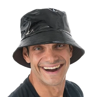 Shiny black hat: the eye-catcher for any outfit thanks to the stylish vinyl look Can be worn in different ways: whether at the festival, carnival or the next themed party Cool bucket hat for adults: it combines retro charm and modern sparkle Lightweight plastic material: comfortable to wear and easy to use Stylish accessory for fancy dress, streetwear or as a statement piece for fashion fans