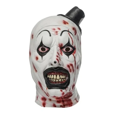 Chaks Terrifier Art the Clown Mask: Immerse yourself in the world of horror with this creepy full head latex mask in white-black with blood red speckles that gives your Halloween or carnival outfit the ultimate killer look Expressive and unforgettable: the crooked face with black lips and the small crooked black hat on the mask make you the fearsome focal point at any horror or theme party One size fit: thanks to flexible latex material, the mask adapts perfectly to your head size and sits comfortably - so you can celebrate and scare for hours carefree, whether at carnival, Halloween or at the next theme party Versatile accessory for adults: whether for horror fans, cosplay players or party goers, this mask complements your costume with a detailed, scary design for unforgettable performances Authentic terrifier look: with this detailed mask you can bring the unforgettable Art the Clown to any party and ensure real goose bumps moments, Manufacturer: Chaks