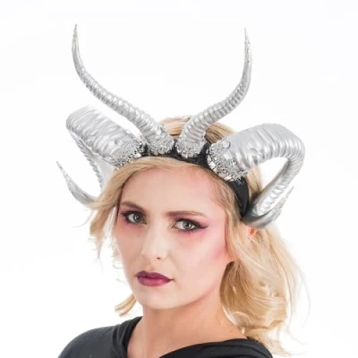 Remarkable design: red hat with glittering sequins and two prominent black horns that look like piercing the hat Size: the headband easily fits most head sizes and is comfortable to wear thanks to its lightweight plastic material Ornaments: the attachment points of the horns are adorned with fine silver accents that give depth and sparkle to the headpiece and elegantly complement the design Occasion: whether for carnival, Halloween or themed parties, the headband easily complements fancy costumes and ensures that your outfit immediately attracts attention Combination: you can pair the silver horns with dark clothes, gothic or fantasy costumes, fairy dresses or original evening outfits to complete your look Design: the black headband impresses with its four curved silver horns, those in the middle being curved upwards and those on the sides down, Manufacturer: CHAKS