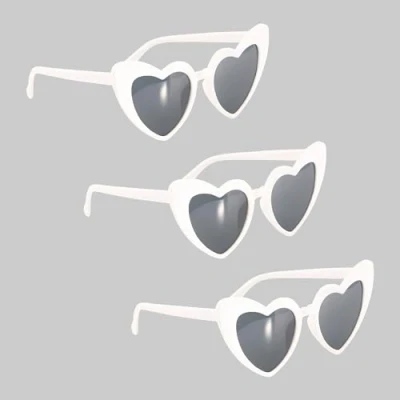 Expressive appearance: the eye-catching heart shape creates playful retro vibes and adds a touch of humor and charm to any party look Striking contrast: the white frame with black tinted lenses attracts all the attention and matches both striking outfits and simple styles Distinctive retro look dimensions: approx. 15 x 14.5 x 6 cm, the heart shape ensures presence and complements female faces with a touch of playful extravagance Party mood in a set of three: the practical set of three always includes glasses for your best friend or the next festival - a real eye-catcher in the collective Party look for the bridesmaids: the eye-catching heart shape ensures a uniform style, joint photos and maximum recognition during the bachelor party, Manufacturer: CHAKS