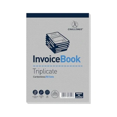 Challenge Triplicate Invoice Book without Vat, Carbonless, 50 Pages, 5 pack (195 x 137 mm)