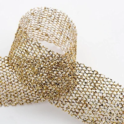 Champagne Open Mesh Glitter Ribbon Ribbon Width: 25mm Roll Length: 10M Supplied on a Roll