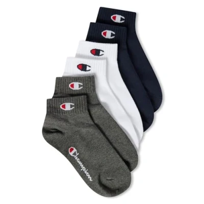 AmazonFabric: Socks knit – 67% Cotton, 25% Polyester, 5% Polyamide, 3% Elastane Soft and stretchy cotton-blend fabric Ribbed cuff for a comfortable, secure fit Breathable design ideal for daily wear Embroidered Champion logo on the side