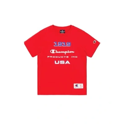 Champion Boys Legacy Retro Sport B (306854) Graphic Crewneck Short Sleeve T Shirt, Red (Rs011), 7 8 Years UK