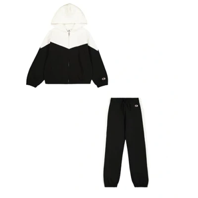 Champion Girl's Legacy Script Shop G (405046) Ultra Light Soft Compact Powerblend Fleece Color Block Hooded Tracksuit, Black (KK001), 15 16 Years