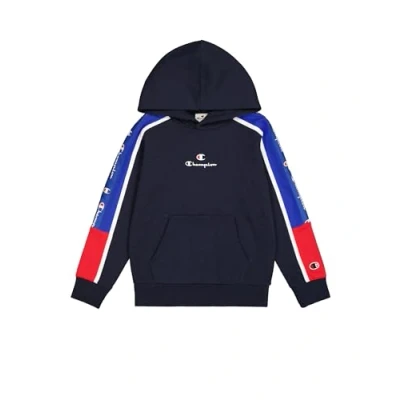 Champion Legacy Retro Sport B (306856) Ultralight Soft Compact Fleece Taped Hoodie, Navy/Deep Blue (NNY/BAI/WHT), 3 4 years (XXS) Boys FW24