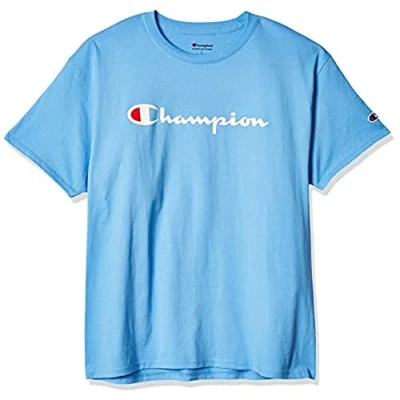 Champion Men's, Classic Graphic, Soft and Comfortable T Shirts, Script Logo (Reg. Or Big & Tall), Swiss Blue, S
