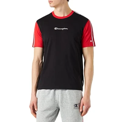 Champion Men's Legacy Division 1 Small Logo S/S T Shirt, (Black/Red Intense), M
