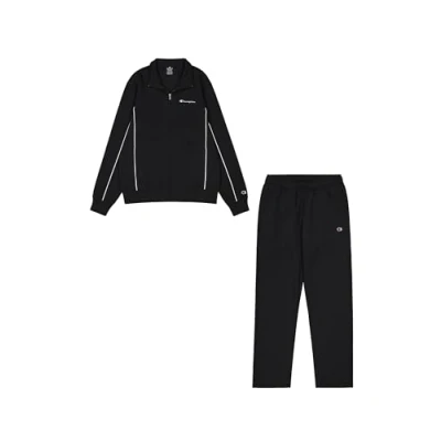 Champion Men's Legacy Script Shop Piping (220289) Soft Compact Powerblend Fleece High Neck Tracksuit, Black (KK001), L