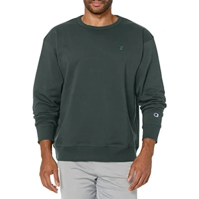 Champion Men's Powerblend Fleece Crew, C Logo, Dark Green, S