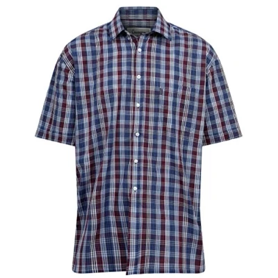 Champion Mens Short Sleeve Shirt Yarn Dyed Polyester Cotton FINE Quality (Large 16 16.5IN, RED)