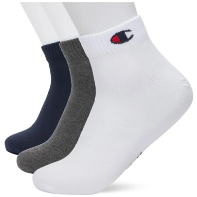 Champion Unisex 3ER Packquarter Basic LOGO Socks, Size: 8.5 11, Blau weiß grau