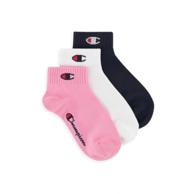 Champion Basics 3pk Quarter Socks, Pink, 9 10.5