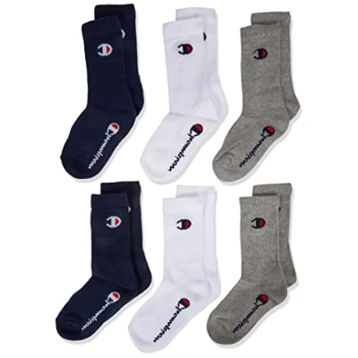 Champion Unisex Kids and teens Core Junior 6pp Crew Ankle Socks, Navy Blue/White/Light Melange Grey, 74 80 UK