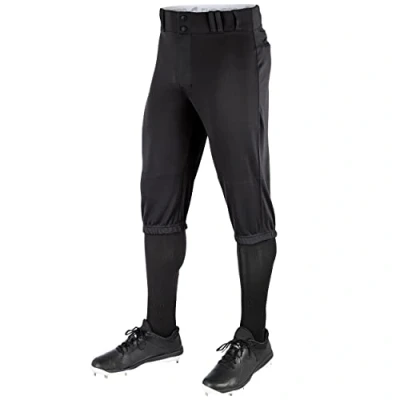 COMFORTABLE: This modern knicker-style pant has elastic leg openings just below the knee, creating a gentle but secure fit for a comfortable feel and easy movement NON-ABRASIVE STRETCH FABRIC: Made of 100% highly abrasion-resistant TEK-KNIT polyester, the 14 oz. pro-weight fabric allows four-way stretch and adapts to the wearer’s movements DURABLE: A sliding seat and knees reinforced with double-ply fabric create a more durable pant that withstands sliding action and lasts longer through the season SUPER-GRIP WAISTBAND: The 2. 5” knit waistband includes Super-Grip Gel strips that keep jerseys tucked in. Slide a belt through the 7 pro-style tunnel belt loops to secure the uniform in place