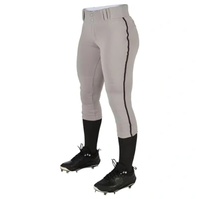Champro Women's Tournament Low Rise Softball Pants with Side Traditional w/Braid, Grey, Black Pipe, Medium