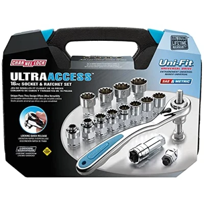 Channellock 39100 Ultra Access Socket Set, 16 Piece, Chrome/Nickel