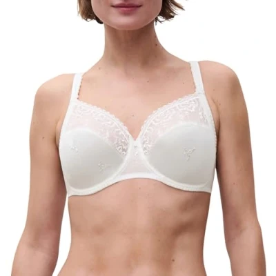 Underwired bra in milk Cups with soft, imaginative embroidery Double-lined undercups for optimum hold Chantelle emblem on the centre bar and bow details on the strap Decorated full length adjustable straps