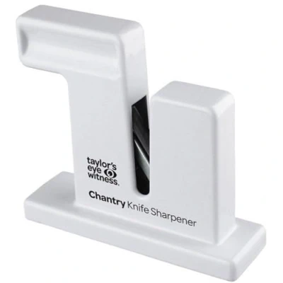 USE - The Classic Chantry Knife Sharpener can be used instead of a traditional honing steel. The sharpener can be used to sharpen plain or serrated knives, restoring the cutting edge of the blade. It gives a sharp cutting edge without damaging the blade and requires no batteries or mains electricity making it portable and reliable. The base has holes which allow the sharpener to be secured to a surface for even safer sharpening and to ensure it's easy to find in a busy professional kitchen. HOW IT WORKS - The Taylor's Eye Witness Classic Chantry Knife Sharpener reproduces the action of a butcher's steel. It automatically ensures the correct edge angle is applied and equally sharpens both sides of the blade. The steels revolve under tension and do not wear away the blade. The sharpener can be used from either side and either left or right handed. A top choice for at-home cooks and professional chefs. After prolonged use you may need to fit replacement steels. HOW TO USE - Before use, wipe the knife blade to ensure the Sharpener remains clean. Draw the knife between the steels as if slicing bread, using enough pressure to engage the steels. Very dull knives may require a more vigorous action. For best results, use the Chantry Knife Sharpener frequently, preferably each time the knife is used. Please note that in some cases, a micro serration may be left on the blade, as part of the sharpening process. A handy and compact size at 12.5cm x 11cm. GLOBAL REPUTATION - Taylor's Eye Witness was founded by John Taylor in the early part of the 19th century in Sheffield, the original city of steel. Established in 1838, they have over 175 years experience which has given them the edge when it comes to product development, continually designing and developing kitchenware products based on their customer's needs. They have stood the test of time through an unrelenting dedication to quality, service and technical know-how in the design of knives. LIFETIME GUARANTEE - This Taylor's Eye Witness product is covered by a Lifetime Guarantee. Any item found defective will be repaired or replaced without charge. We fully protect the consumer's statutory rights. Still operating from their original site in Sheffield, England where they started out in 1838, this family business manufactures and sources kitchen knives and other housewares related products for retailers across the world. What they don't know about kitchen knives isn't worth knowing