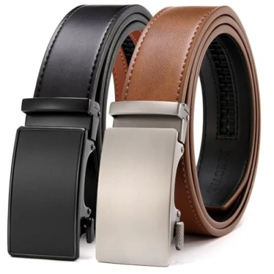CHAOREN Leather Belts for Men 2 Pack Ratchet Belt 1 3/8" in Gift Set Box Micro Adjustable Meet Almost Any Occasion and Outfit