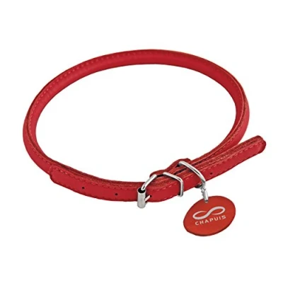 Chapuis Upholstery Glamour 45 53 cm Diameter 13 mm Round Adjustable Leather Dog Collar Red Size L