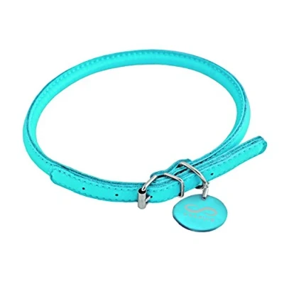 Chapuis Upholstery Glamour Diameter 6 mm Length 17 20 cm Round Adjustable Leather Collar for Dog Cat Blue size XS
