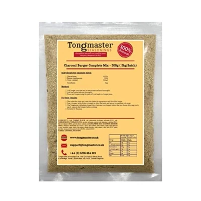 Our charcoal burger mix has a delicious spicy smokey taste with a rich BBQ flavour. Use 500g mix per 4kg minced meat, includes rusk. This will make 5kg of burgers. Use with beef, chicken, pork, lamb or alternative! Simply add this seasoning to minced meat & water. Shape the burgers by hand or use a press for a professional look! The colder the meat and water, the better the appearance and life of the burger. Leave burgers in the fridge overnight to allow the herbs and spices to marinade with the meat Dont forget to use burger discs between your burgers before they are frozen allowing you to easily separate the burgers.