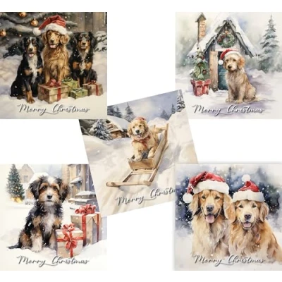 Charity Christmas Cards pack of 10. Each card contains 5 different Dog designs. Ecofriendly and UK made. Verse inside. 150 x 150mm size.