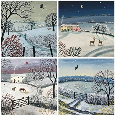 CHRISTMAS CARD MULTIPACK – Pack contains 24 premium 4pp 150x150mm cards (4 designs x 6 of each). Each Christmas Card is supplied folded with matching envelopes in a sturdy box. MADE IN THE UK – Designed, printed and packed in the UK, our cards and packaging are made from board which is also manufactured in the UK. Cards are printed with Christmas Verse on inside. CHRISTMAS CARDS FOR ALL – Boxed Christmas cards perfect for all your friends, family, work colleagues or customers. PREMIUM QUALITY THICK CARD – We only use good quality board for our cards. Carefully chosen for stiffness and whiteness with a good surface on the inside to allow you to write your greeting with almost any pen or pencil. QUALITY ENVELOPES – Each pack contains good quality 155 x 155mm White Gummed Diamond Flap Envelopes.