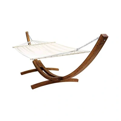 CHARLES BENTLEY Extra Large 4M Hammock, With Larch Wooden Arc Stand, For Two People, Adjustable Hammock Height, In Cream, Free Standing, Canvas Fabric, Swing Seat, Cotton, Polyester (400x120x130cm)