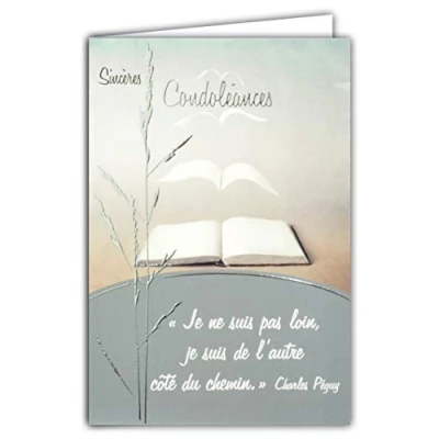 Charles Péguy Quote Card Silver Grey Shiny Book Page Turning Birds Flight Peace Excess Deuil Made in France