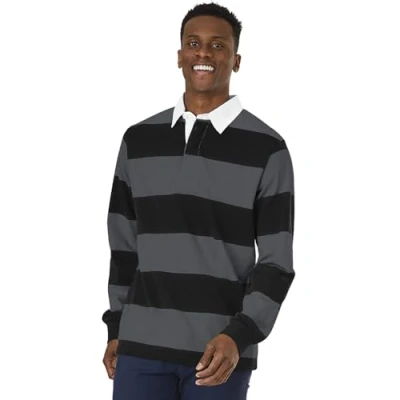 Charles River Apparel Men's Classic Rugby Shirt, Black/Grey, XL