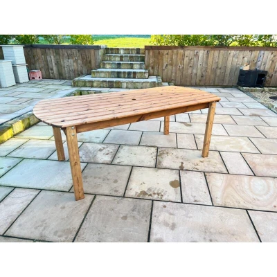 This item will be assembled by the Charles Taylor professional delivery team upon arrival. Rounded Edge Rectangular Table. Can be used inside or outside. Hand Finished. Made in Britain. FSC Timber. Preservative/Stain Applied. Rustproof Galvanised Zinc Bolting. Assembly may be required.Delivery to the following postcodes will incur a surcharge, please contact us before ordering - KW & IV. Delivery to BT, PO Isle Of Wight Postcodes & Offshore Islands is not possible Your furniture is supplied with one coat of the 'Taylor Brown' oil based preservative. To help protect and extend the life of your furniture we strongly recommend for you to apply another coat every 6-12 months. Wood is a natural product and may expand and retract depending on the weather conditions therefore we can not be held responsible for cracking , splitting , warping and shrinkage as this is a natural occurrence , because of this it may be necessary to check the tightness of the bolts/screws.