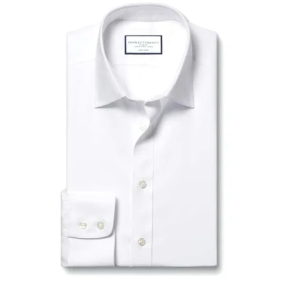 Charles Tyrwhitt Classic Collar Non Iron Twill Cotton Formal Shirt White Single Cuff Size 15.5/33