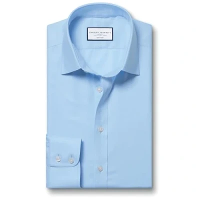 Charles Tyrwhitt Non Iron Twill Cotton Formal Shirt Sky Blue Single Cuff Size 16.5/33
