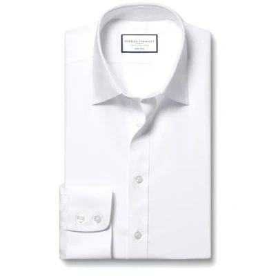 Charles Tyrwhitt Shirts for Men White Non Iron with 100% Cotton Twill Formal Dress Shirt Work, Business & Weddings Slim Fit Classic Collar