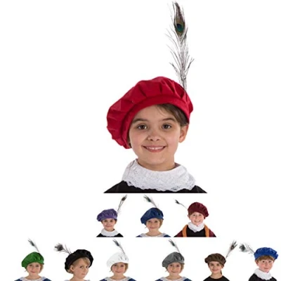 Red Tudor Hat costume accessory for kids. One Size 3-12 Years Outfit includes cap with feather only. 100% Polyester. Machine washable. As a precaution keep away from fire. For more information view the product details below., Manufacturer: Charlie Crow