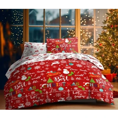 Santa Claus and his favourite friends are coming to town on these sweet seasonal Christmas duvet set. Perfect for both children and adults FESTIVE DESIGN: Add a magical touch to your bedroom with this vibrant red duvet cover featuring charming Christmas slogans and patterns – perfect for spreading holiday cheer! All designs are fully reversible and feature great festive merry patterns on both sides, which are sure to add a festive touch to your bedroom Choose from 8 Christmas designs Gonks/ Gnomes, Santa, Snowman, Elfs, Merry slothmas Christmas festive duvet cover bedding sets Our bedding set is made from skin friendly soft and durable polycotton fabric (52% Polyester / 48% Cotton). Easy care and easy to was This collection is verified by OEKO-TEX and independently tested for harmful substances. It stands for customer confidence and high product safety King bed duvets cover set 230 x 220cm plus 2 pillowcases 50 x 75 cm PERFECT GIFT: Ideal for gifting during the holiday season to friends or family – transform any bedroom into a cozy Christmas retreat! Great British Charlotte Andersen Designed Xmas duvet cover sets in the best on trend colours